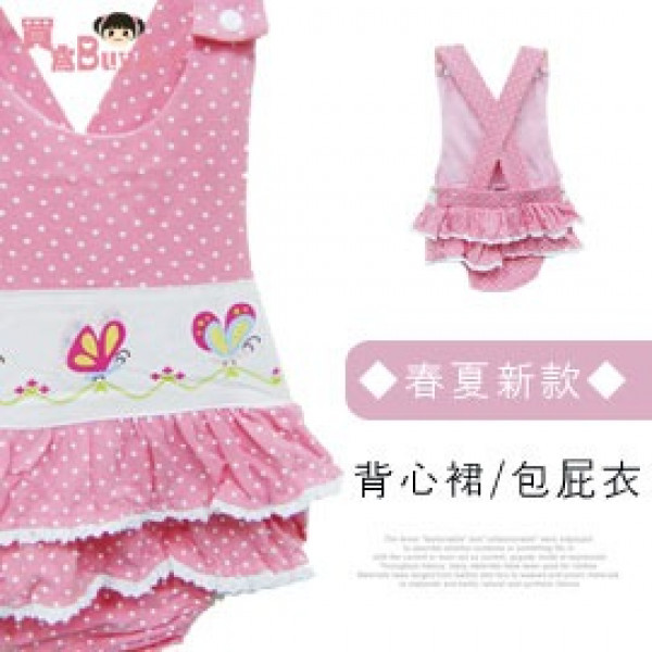 【時尚露貝哈衣連身衣系列】-蝴蝶紛飛荷葉背心裙/包屁衣/露背哈衣/春夏哈衣☆80/90/100